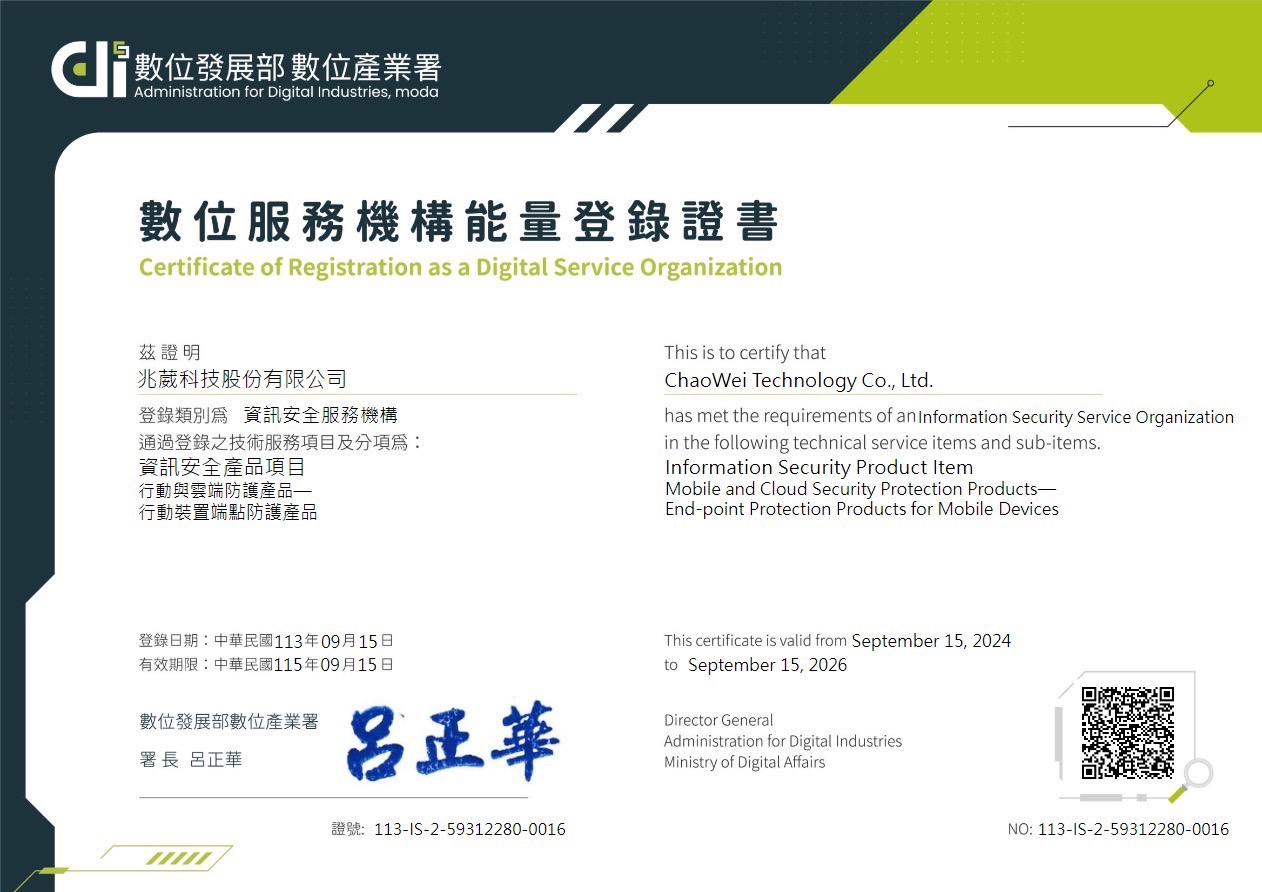 CW MDM兆葳科技自主開發致力於企業安全的行動控管與客製化整合服務,通過Android Enterprise 多元Android設備統一設備監控、管理、 大量佈署APP與資安控管安全性服務,有效因應政府推動ISO 27001行動設備資安及風險管制方法、零信任架構ZTA、淨零碳排ESG之推動政策導入資安產品。